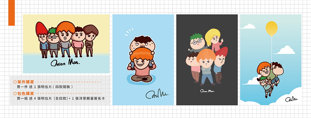 買一組 送 4 張明信片 (全四款)+ 1 張洋蔥親筆簽名卡
