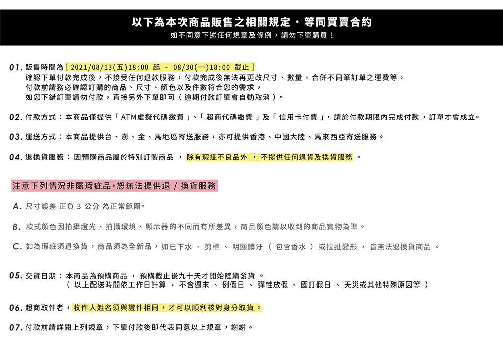 ● 預購時間 2021 / 8 / 13 ( 五 ) 18 : 00 - 9 / 2 ( 四 ) 18 : 00 (延長加開!)